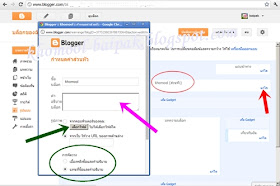 1.ให้ใส่คำอธิบายบล็อก(ลูกศรสีบานเย็นชี้)หรือจะไม่ใส่ก็ได้
